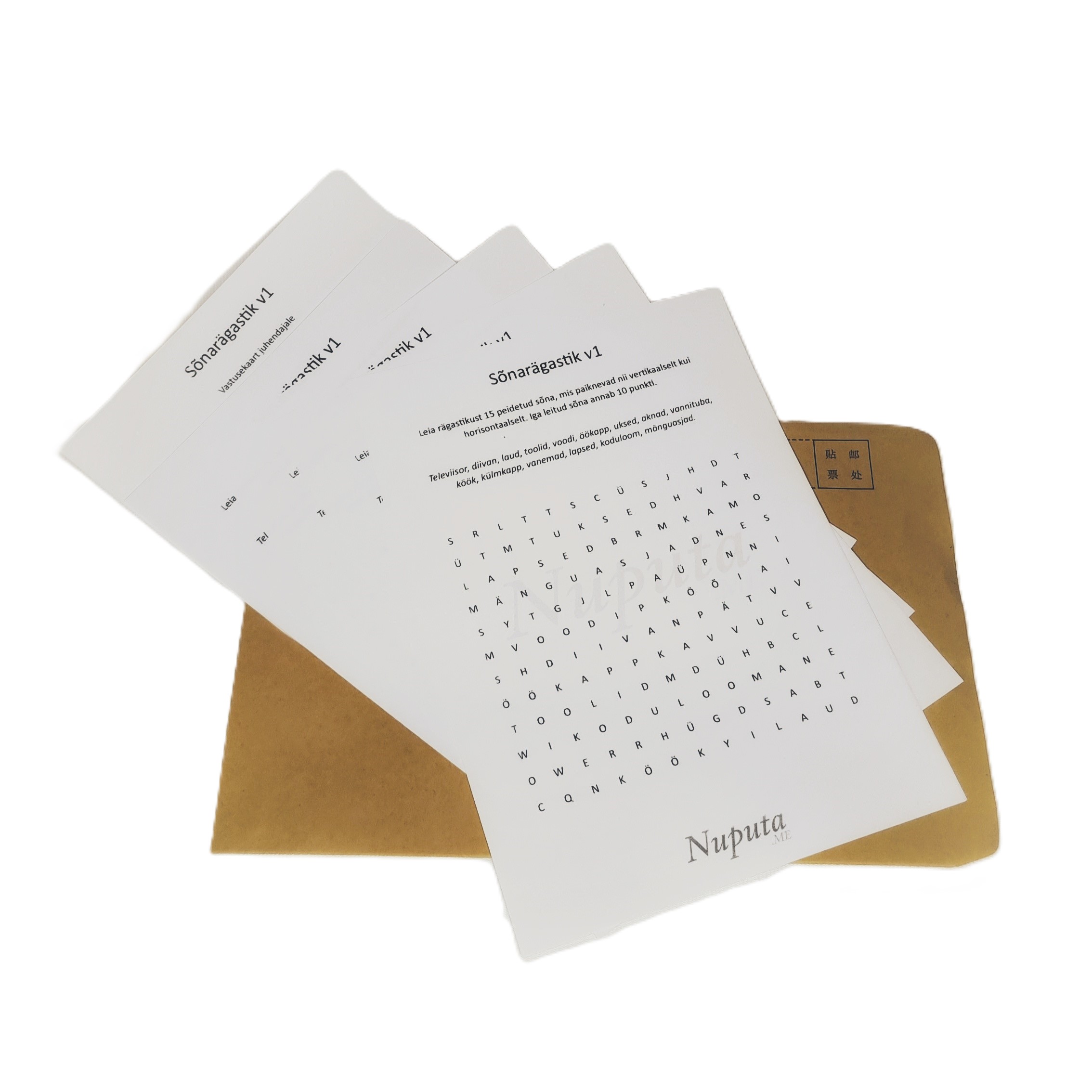 - Ei vaja ettevalmistust — jaga lehed laiali ja mäng võib alata